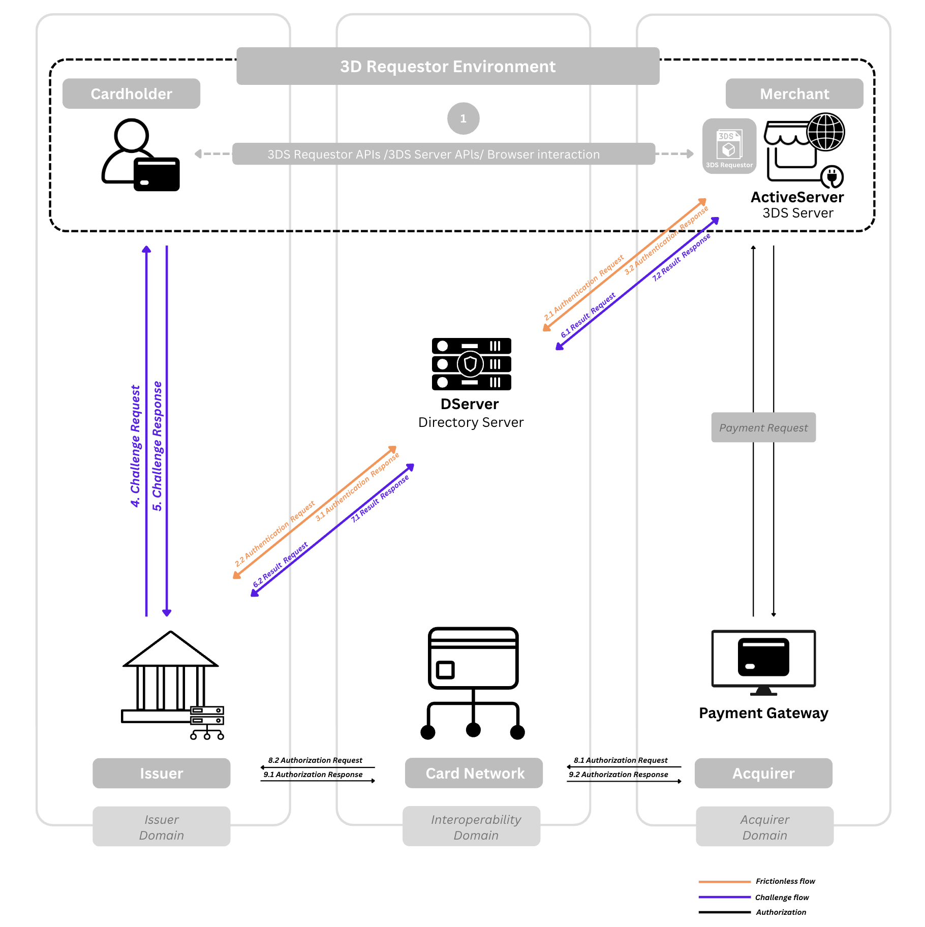 3D Secure (3DS) is an authentication protocol used in card-not-present (CNP) transactions to reduce fraud and improve security. Depending on the transaction risk and issuer’s assessment, the flow may proceed as Frictionless, Challenge, or even be Exempted from strong customer authentication (SCA).