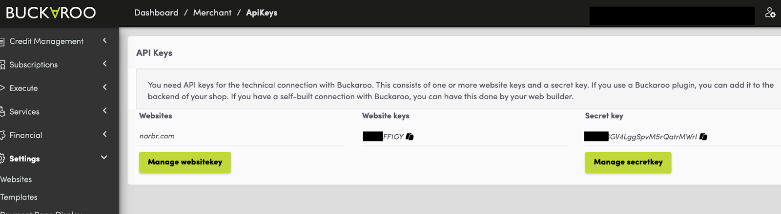A website will be the equivalent of a merchant contract on NORBr interface so for each website, get the Website Keys and Secret keys here :