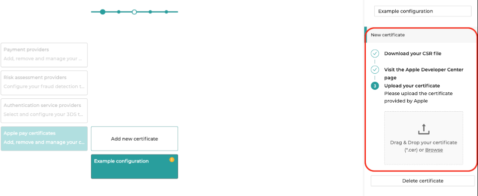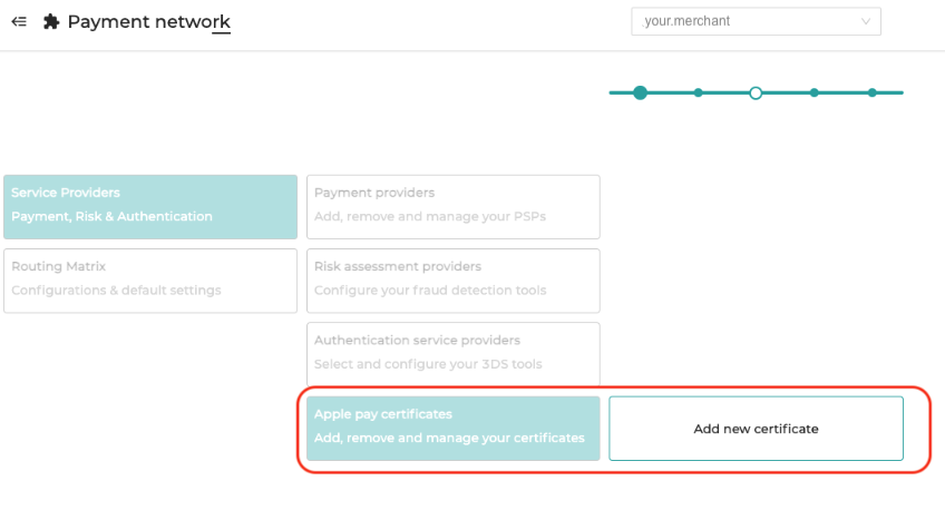 9- Go to your merchant contract in your merchant account and select the certificate created in the field apple_pay_certificate: