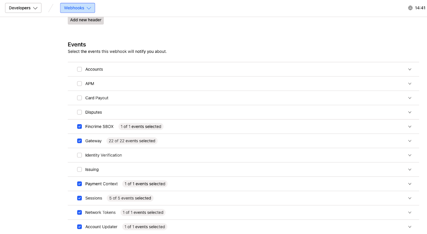 Go to the webhooks tab here and add a new webhook : https://dashboard.sandbox.checkout.com/developers/webhooks