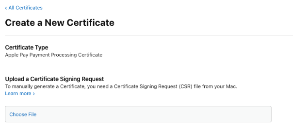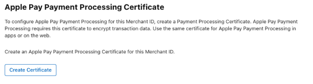 4 - In the ApplePay Merchant Identity Certificate section, select Create Certificate
