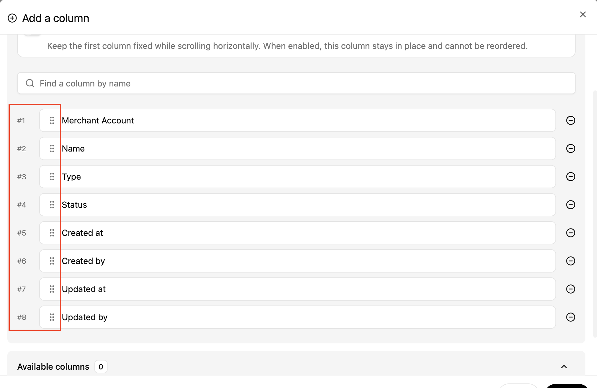 Removed columns are not deleted and can be re-added later. Changes are staged locally and are not applied immediately. The updated table configuration is only applied after clicking Save.