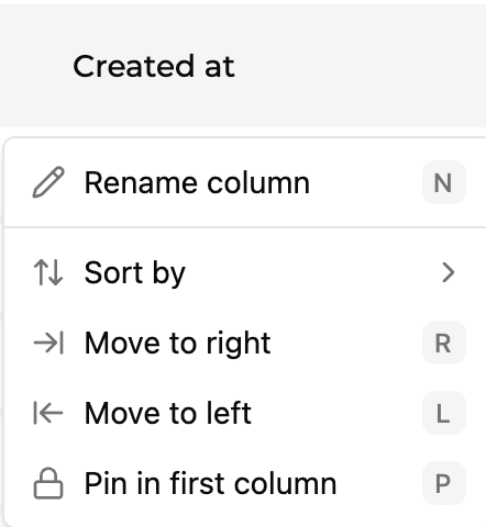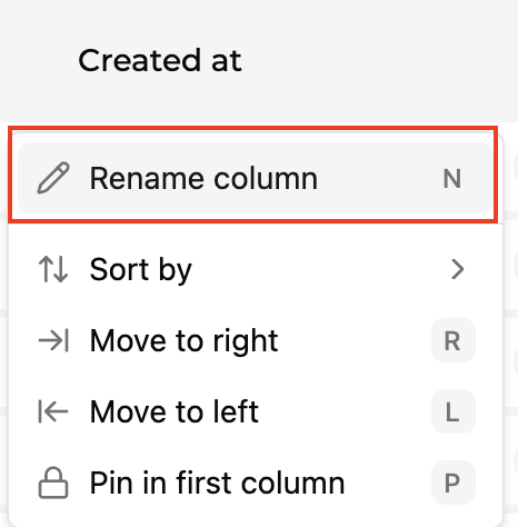 The “Add a column” action is available from the table toolbar (shortcut: ⇧ + L)