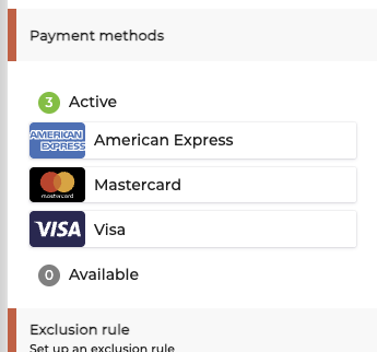 In the settings of your Merchant Contract where you earlier filled in the credentials and put other settings in place, you will see a section Payment Methods with two sub-sections: Active and Available.