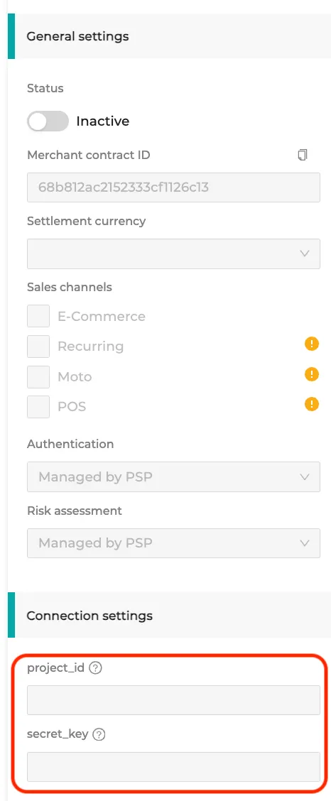 Once you set up the connection by creating the Merchant Contract, you will be able to activate payment methods available for this Partner.
