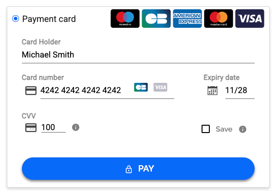 - Smart Input Formatting: Formats card numbers and expiry dates as users type for a smoother experience.