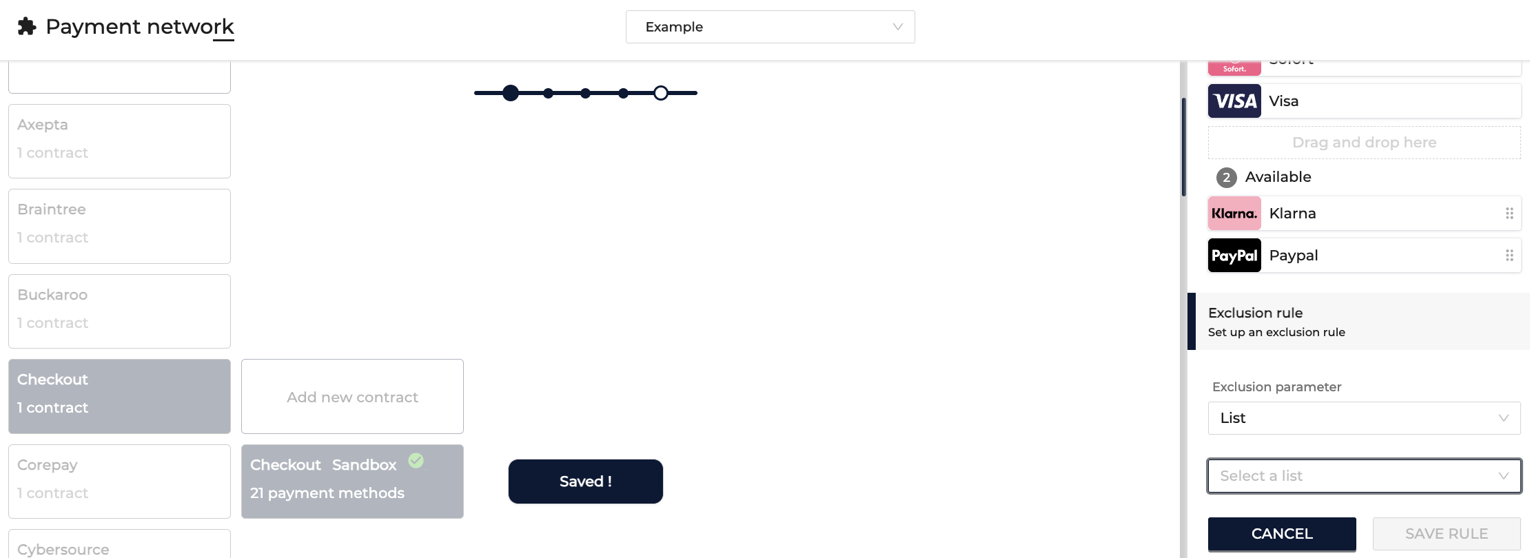 - Granularity – apply lists globally, at the merchant account level, or within specific PSP exclusion rules.