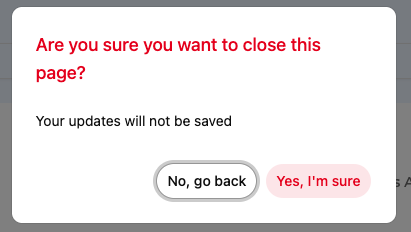 If a user attempts to leave the page with unsaved changes, a confirmation modal appears.