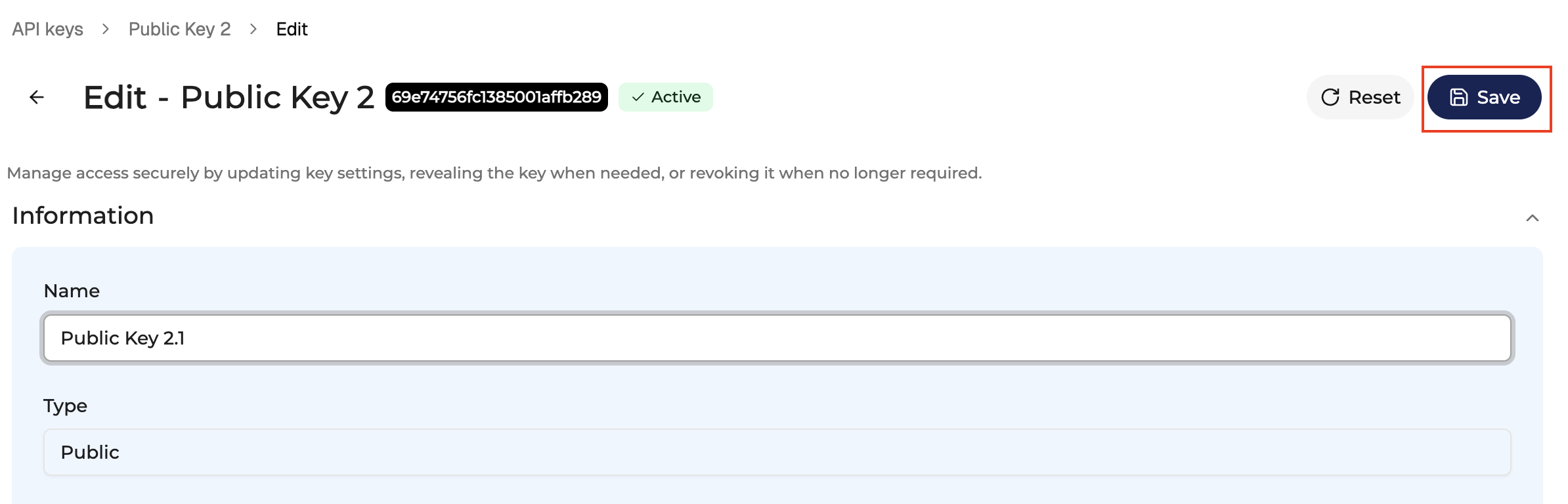 Editing an API Key