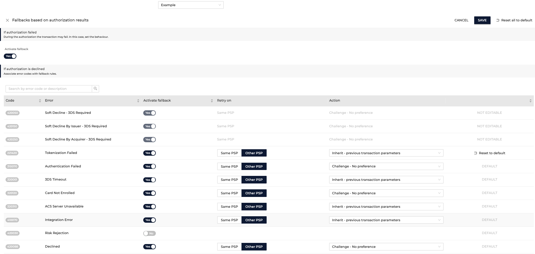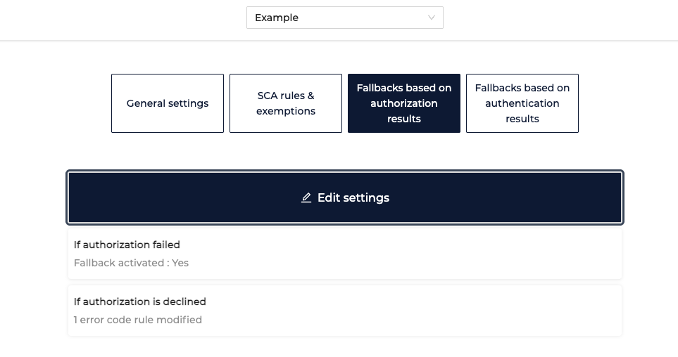 - Specify for which authorization decline code to activate fallback