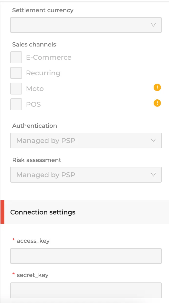 Once you set up the connection by creating the Merchant Contract, you will be able to activate payment methods available for this Partner.