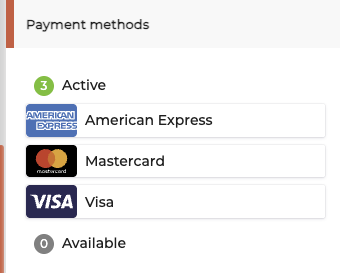 In the settings of your Merchant Contract where you earlier filled in the credentials and put other settings in place, you will see a section Payment Methods with two sub-sections: Active and Available.