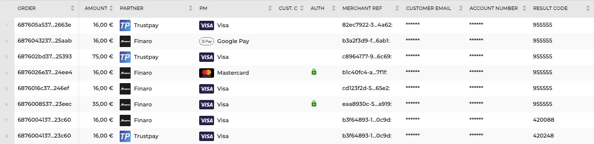 }You can find the result code for each of your transactions in your merchant account as well. This is to be found in the transactions section. To see the result code, please add the "result code" column into your view. To do so, click on "Display" in the top right corner and select the columns "result code" and "result description" to be added.