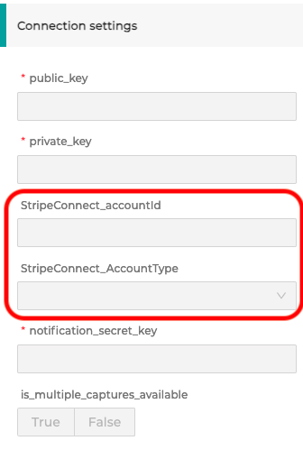 - Public key (starts with pk_ for Production; starts with pk_test for Sandbox)