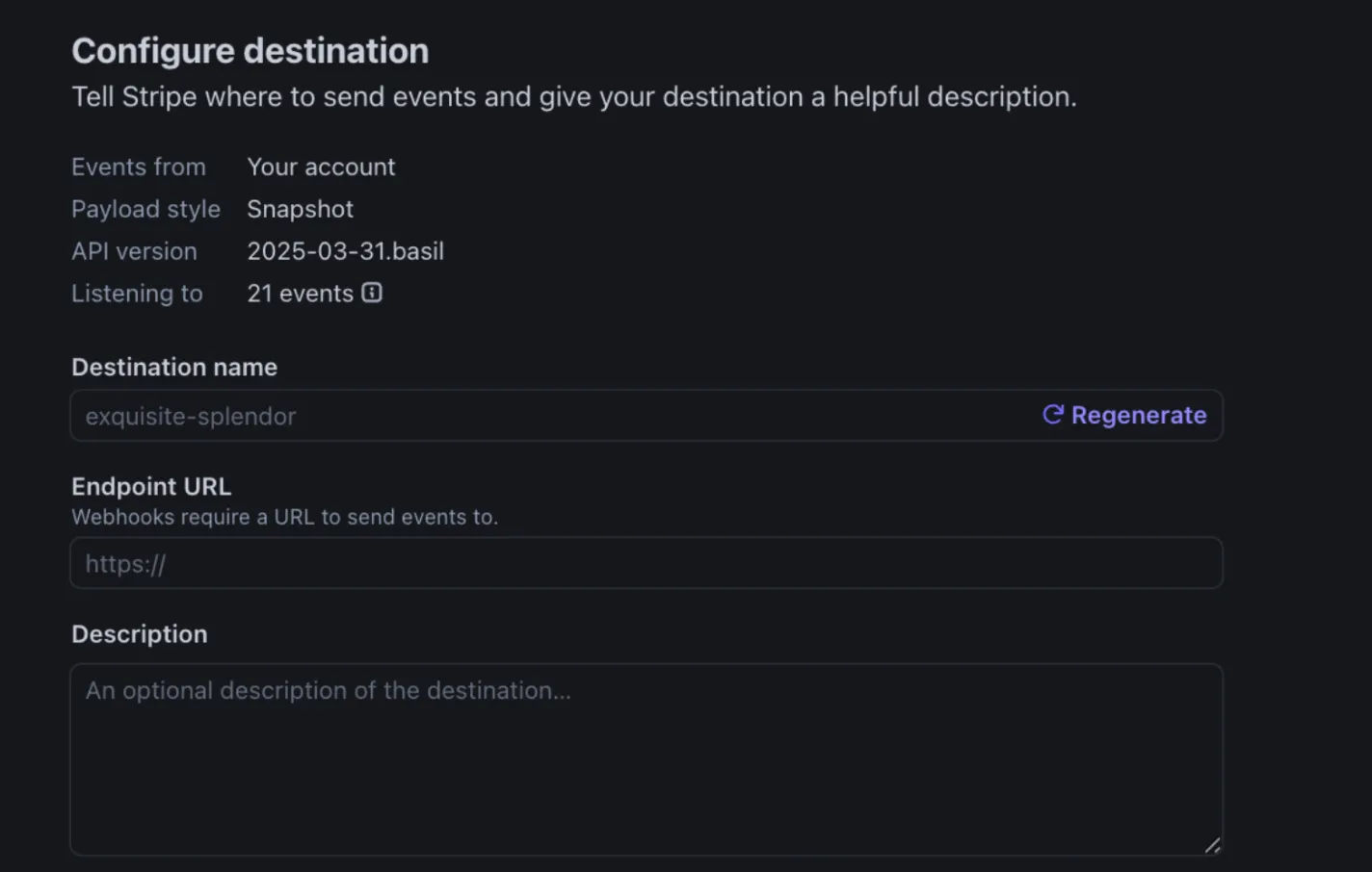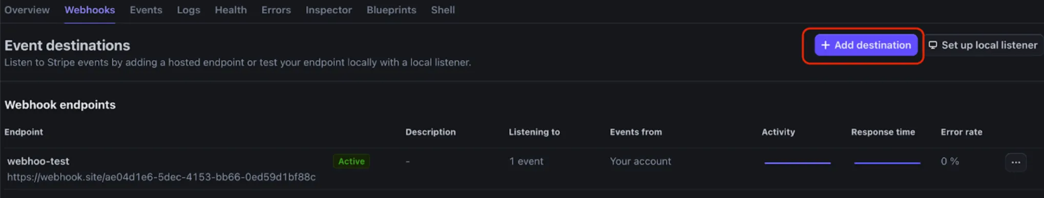 - Obtain your webhook secret key from the same page once the endpoint is added.