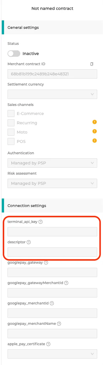 Once you set up the connection by creating the Merchant Contract, you will be able to activate payment methods available for this Partner.